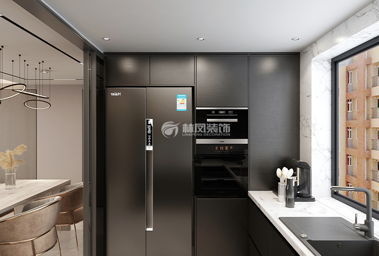 厨房台面装1.5厘米高的挡水条,能挡住溅出的油污和水渍,避免流到地面或橱柜缝隙。搭配台下盆设计,台面积水一抹就进盆,清洁时不用抠接缝,连抹布都能少洗几次。