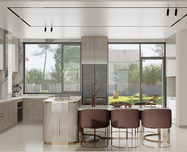 第四条是功能分区软划分优先。小户型别做实体隔断,可用屏风、窗帘或矮柜分隔区域,保持空间通透;大户型也避免厚重隔断,比如客厅与餐厅用吧台过渡,既划分功能又不影响采光。这种方式既能明确区域功能,又不会让空间显得局促,大小户型都适用。