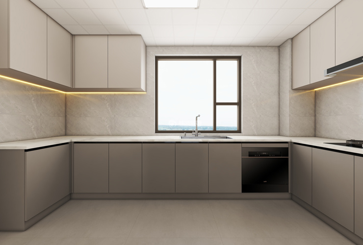 客餐厅、阳台选择同色系瓷砖或木地板通铺,不做门槛石,让空间融为一体,视觉上扩大面积。瓷砖选600×1200mm或更大尺寸,木地板选1.8米以上长板,减少拼接缝,提升精致度。